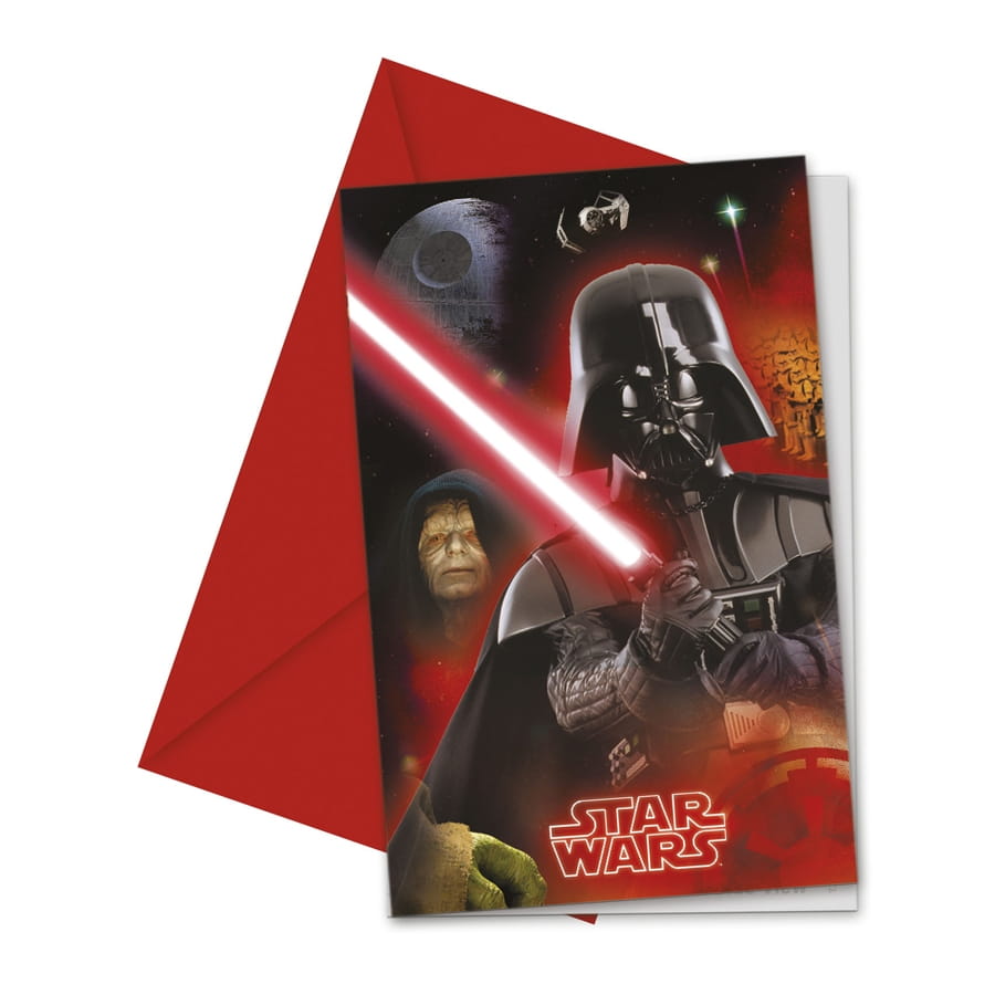 Vos invités seront éblouis en recevant ces magnifiques cartes d'invitation Star Wars et enveloppes. Elles sont de couleur rouge et noir, et affichent au premier plan le célèbre Dark Vador avec sa redoutable épée laser. Ce produit est sous licence officielle Star Wars, livré par paquet de 6 (6 cartes et 6 enveloppes). Parfait pour un anniversaire ou une fête spécial Star Wars.