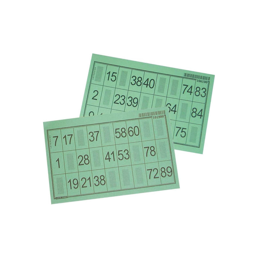 Un lot de cartons de loto. Ce lot de loto est vendu par 100. Vous pourrez vous en servir durant une fête pour mettre un peu d'ambiance. De couleur vert en feuilles jetables, il peut être aussi utilisé pour une soirée sous le thème argent ou casino.