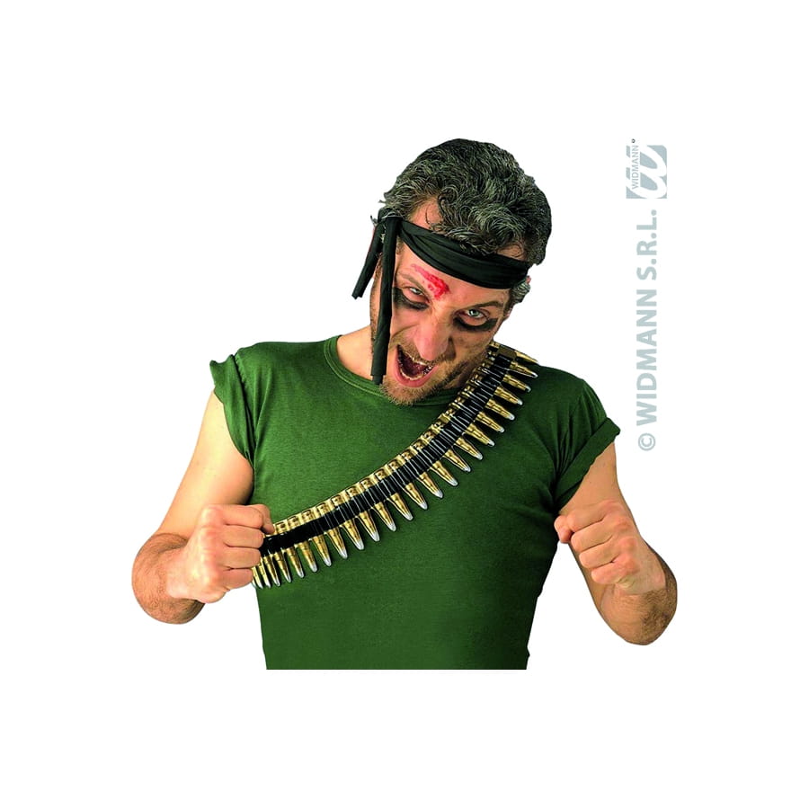 Cartouchière de soldat pour homme de couleur or, bronze et noire. Elle fait 55 centimètres de long. C'est l'accessoire parfait pour compléter avec succès une tenue de soldat ou de guerrier.