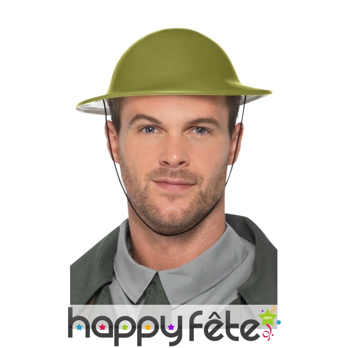 La Seconde Guerre Mondiale a marqué un grand tournant dans l'histoire. Entrez dans la peau d'un soldat qui va combattre sur le front en portant ce casque 40-45 en plastique. Ce modèle de forme demi-sphérique est de couleur verte. Il est équipé d'une petite ficelle noire et il est adapté aux hommes comme aux femmes pour accessoiriser un uniforme.