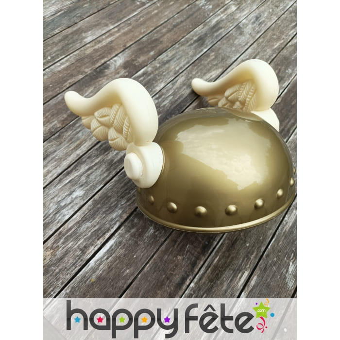 C'est un casque en plastique de couleur dorée aux ailes également en plastique beige que l'on place sur les côtés.