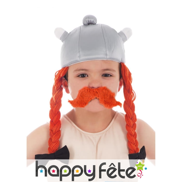 Votre enfant a-t-il jeté son dévolu sur un costume d'Obélix cette année ? Nous avons l'accessoire qu'il faut pour parfaire sa tenue : un casque d'Obélix pour enfant, en tissu, sous licence Astérix/Obélix/etc. Il est de couleur grise et de chaque côté pend une tresse faite de faux cheveux de couleur rousse, attachée au bout par un petit noeud papillon noir. La moustache n'est pas fournie ici, mais vous pouvez en retrouver une sur Happyfete.