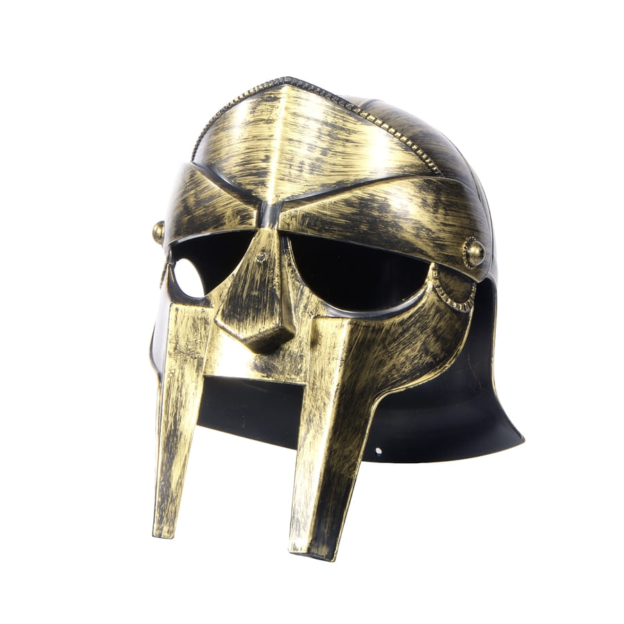 Pour vous imposer en tant que gladiateur, ce casque de gladiateur couleur or vieilli est de mise. Il est juste parfait avec son allure un peu usé par les combats et la matière dont il est fait, en plastique rigide. Vous pourrez le porter même avec des déguisements de chevalier ou n'importe quel déguisement médiéval. Il est destiné aux hommes.