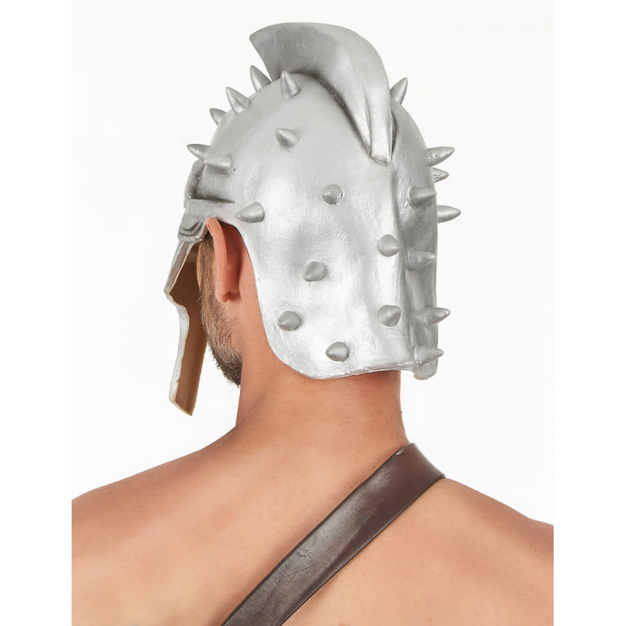 Le casque de guerrier gladiateur en latex est un accessoire très réaliste grâce à son imitation de métal brossé.
