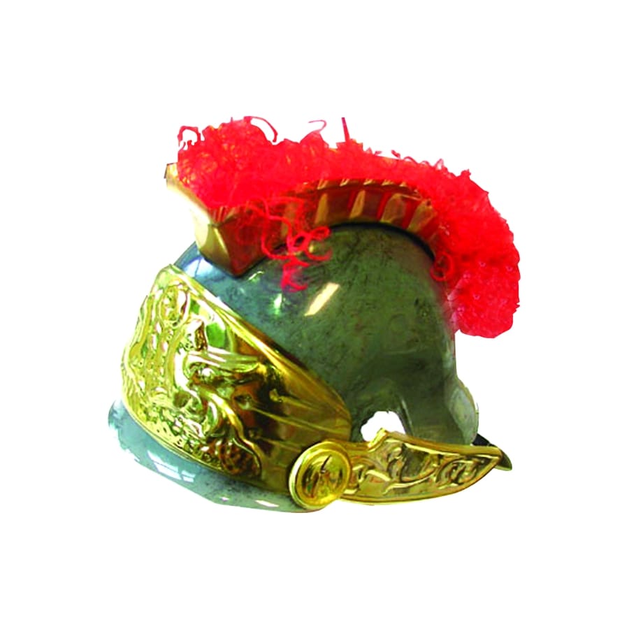 Revêtez ce cas de Romain en plastique doré orné d'une crête rouge pour votre prochaine soirée déguisée. Cet accessoire est parfait pour compléter un déguisement de Romain ou de Grec.
