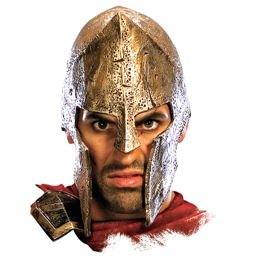 Ce superbe casque de Spartiate doré en latex vous fera revivre, comme si vous y étiez, les plus belles batailles du film 300.