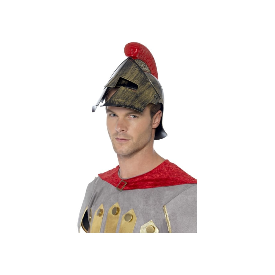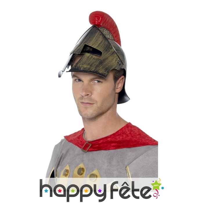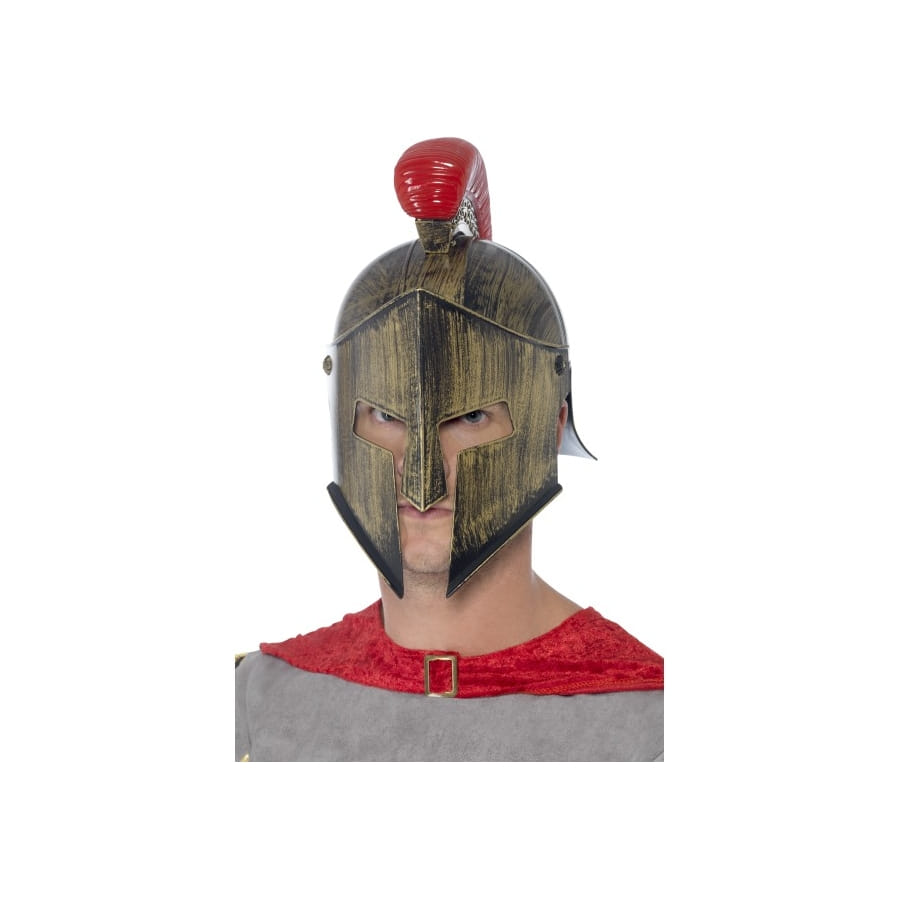 Réveillez le guerrier qui sommeille en vous avec ce casque de spartiate que vous mettrez avec un déguisement de spartiate lors d'une fête costumée. Ce casque est entièrement en polypropylène, c'est-à-dire en plastique. Il est d'une jolie couleur dorée avec une crête en rouge et est proposé en taille unique pour homme. Il s'ouvre et se referme sur l'avant du visage.