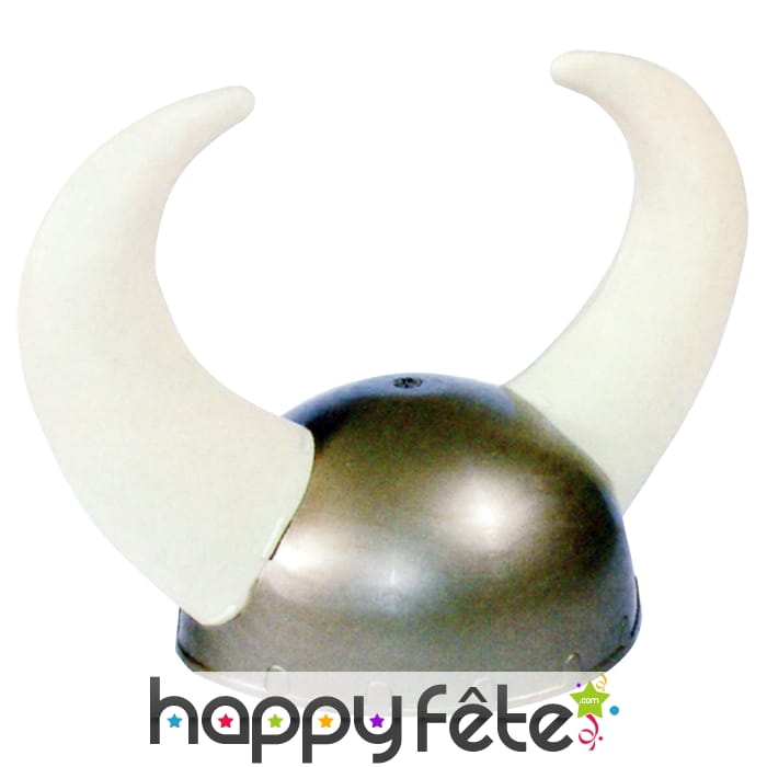 Vous serez un conquérant avec ce casque de Viking en plastique argent et blanc. Cet accessoire vous transformera en conquérant crédible et terrifiant pour vos fêtes.