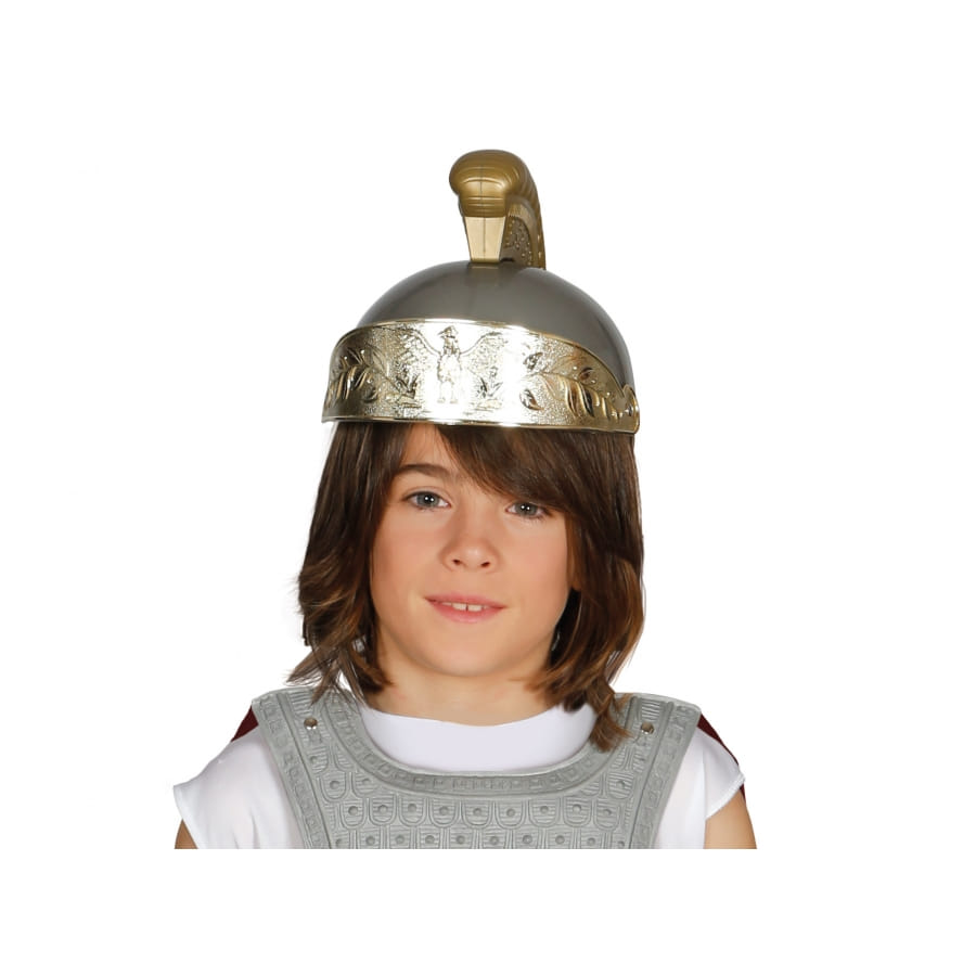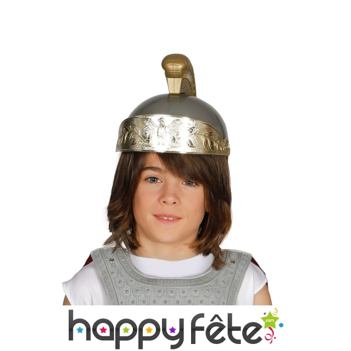 De couleur grise, ce casque enfant de centurion romain est fait en matière plastique.