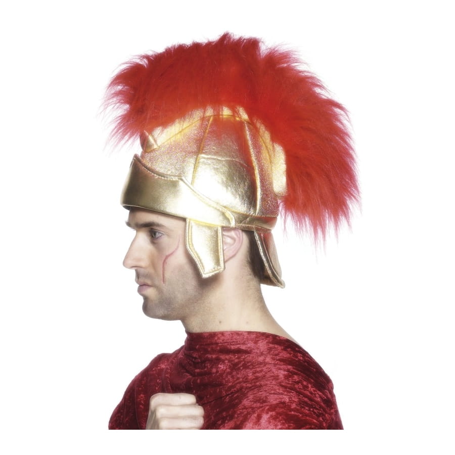 Casque de soldat romain, de couleur dorée, avec cheveux en forme de crête rouge, pour homme. Plaidez allégeance à César en vous déguisant en loyal et fidèle soldat de l'armée romaine.