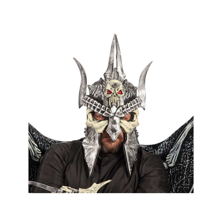 Il est fait en mousse semi-rigide et possède des cornes et une tête de mort avec des yeux rouges qui lui confèrent un aspect très effrayant.