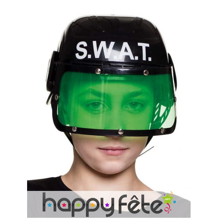 Le casque SWATT noir pour enfant est en plastique rigide.