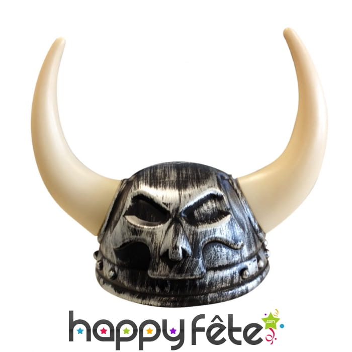 Le casque tête de mort et grandes cornes blanches pour adulte est en plastique.