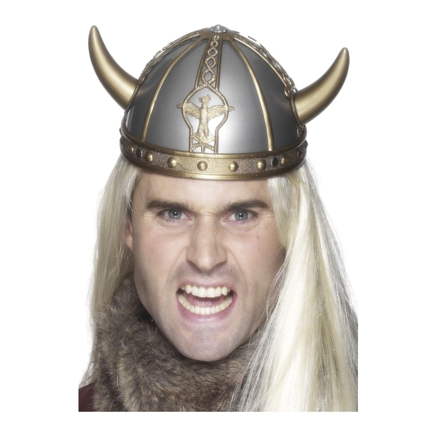 Pour incarner un viking vous aurez besoin de ce casque. Vous pourrez aussi le porter pour une fête sur le moyen age ou encore le thème médiéval. Il est argenté avec des lignes doré dessus ainsi qu'un emblème doré et deux cornes de chaque coté.