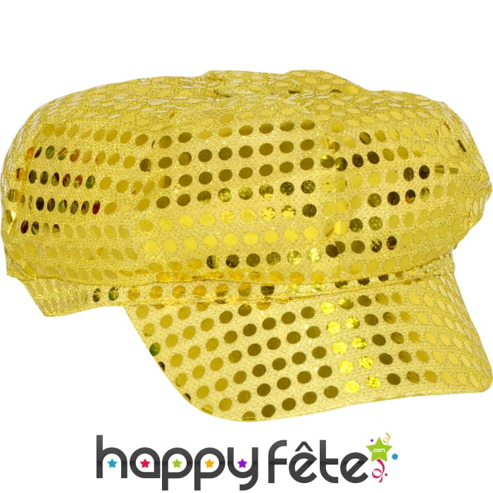 Laissez-vous tenter par cette casquette recouverte de paillettes dorées. Accessoire idéal pour devenir le danseur ou la danseuse disco par excellence.