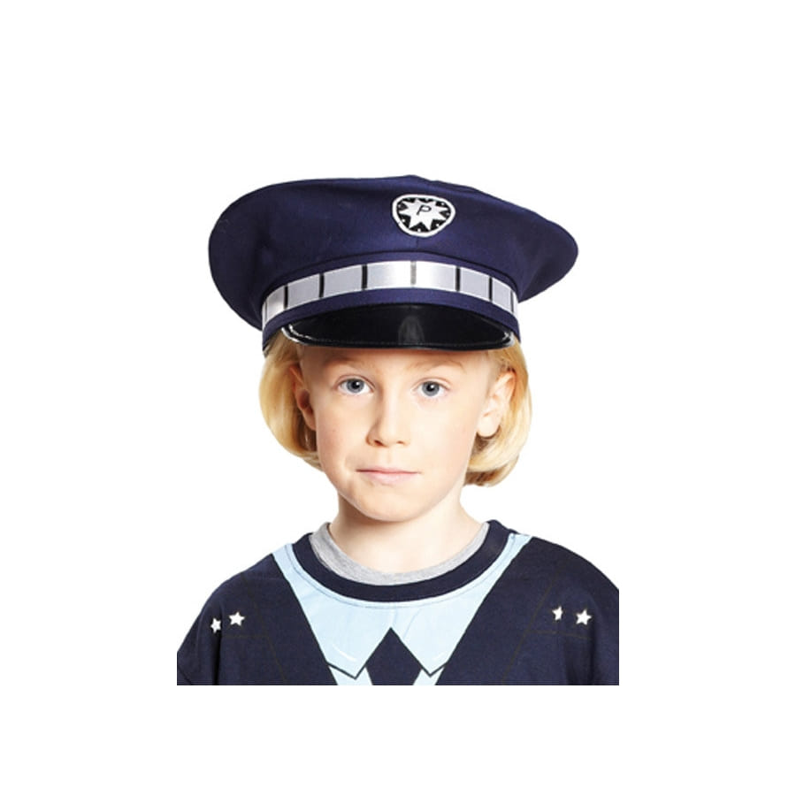 La casquette bleue de policier pour enfant possède un tour de tête orné de petits rectangles gris.