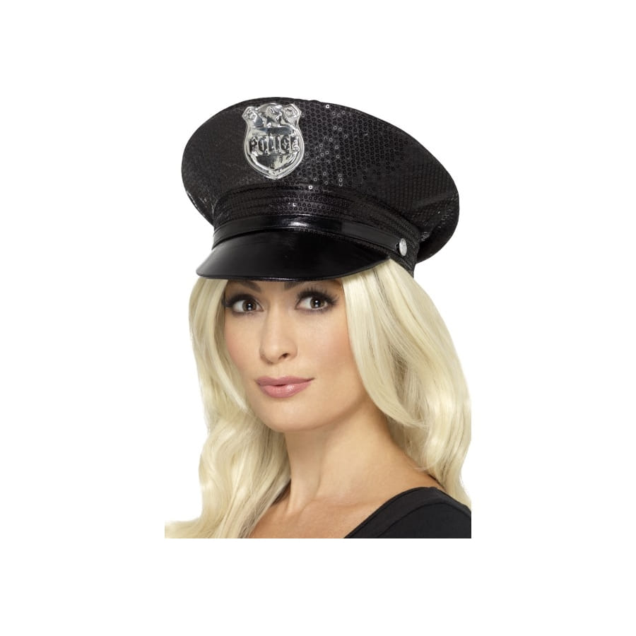 Cette casquette de police à sequins noirs apportera une touche de charme à votre déguisement de police Mesdames ! Avec cet accessoire, sur lequel vous trouverez un badge incrusté de la police de couleur argentée, vous pourrez entièrement entrer dans le rôle d'une policière de charme. Pour finaliser le tout, trouvez-vous un déguisement de policière parmi nos nombreux déguisements.