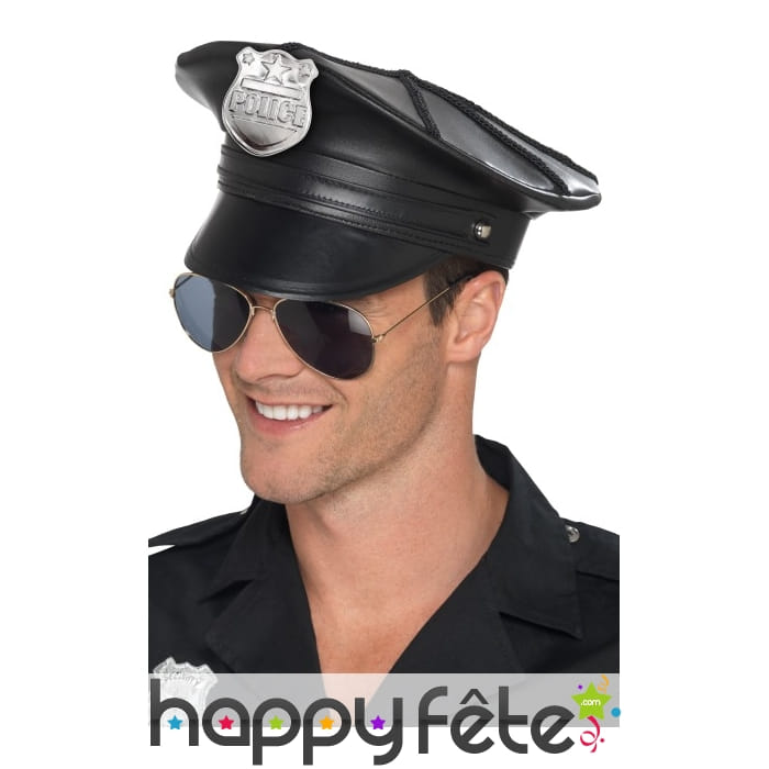 Le métier de policier est très délicat. Même dans l'univers du déguisement, l'uniforme d'un officier de l'ordre se doit d'être impeccable. Voilà pourquoi cette casquette de policier modèle luxe devrait énormément vous plaire. Le modèle est en faux cuir de couleur noire. Il est agrémenté d'un insigne de police argenté sur le devant.