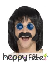 La moustache marron foncé est adhésive et faite en poils synthétiques.