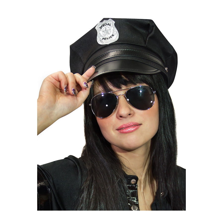 La casquette noire de police avec insigne argentée conviendra aux hommes comme aux femmes.