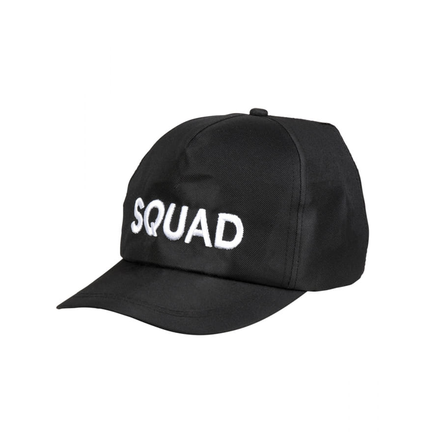Cette Casquette noire imprimé SQUAD blanc sera parfaite pour compléter un déguisement lors d'une fête de célébration.