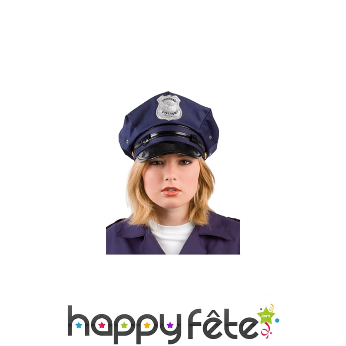Vous avez sûrement déjà remarqué dans les séries et films américains les authentiques uniformes des policiers ! Laissez parler votre imagination, et partez pour l'Amérique. Faites respecter la loi pendant une soirée déguisée grâce à cette superbe casquette de policier américain que nous vous présentons. C'est une casquette de couleur bleue avec une insigne de police sur le devant. Vous deviendrez le beau justicier (ou la plus belle justicière) de la nuit.