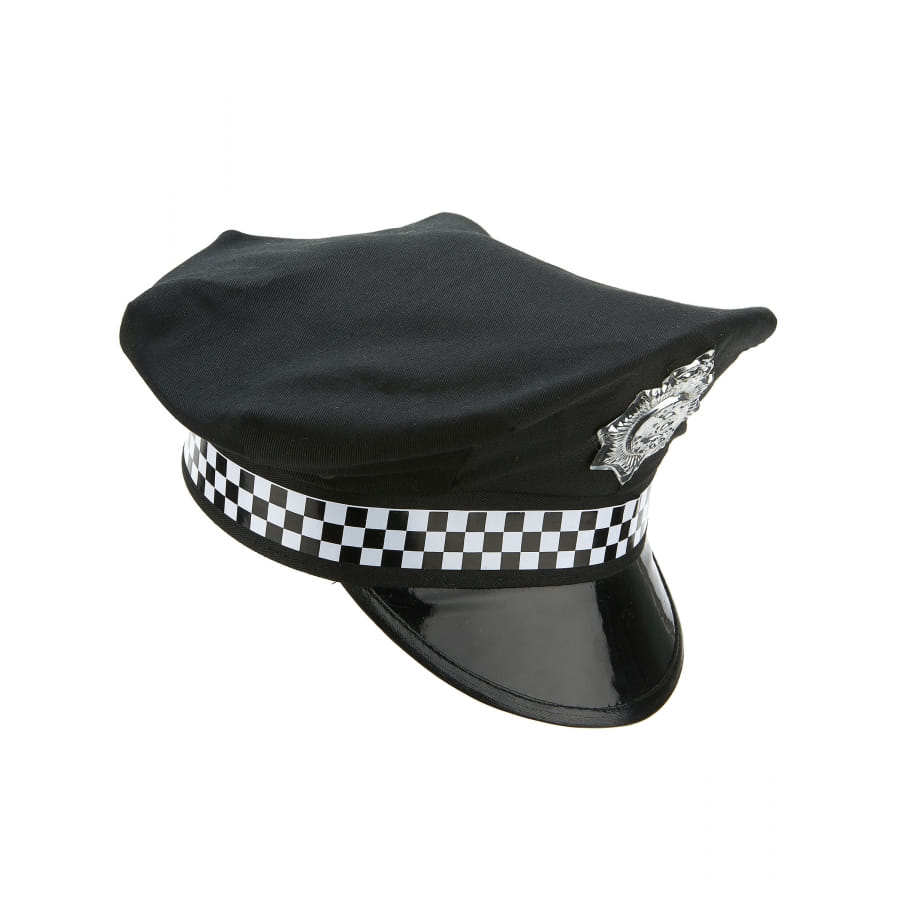 Casquette de policier de couleur noire et blanche, pour homme, avec insigne argentée et visière en plastique. Cet accessoire est indispensable pour un déguisement de policier réussi. Ne la laissez pas à portée du feu.