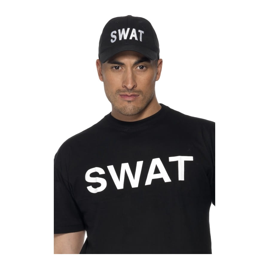 Casquette SWAT de couleur noire, pour homme. Cette casquette est imprimée du mot "SWAT" en blanc. Déguisez-vous en membre des forces spéciales de la police avec cet accessoire discret mais effectif.