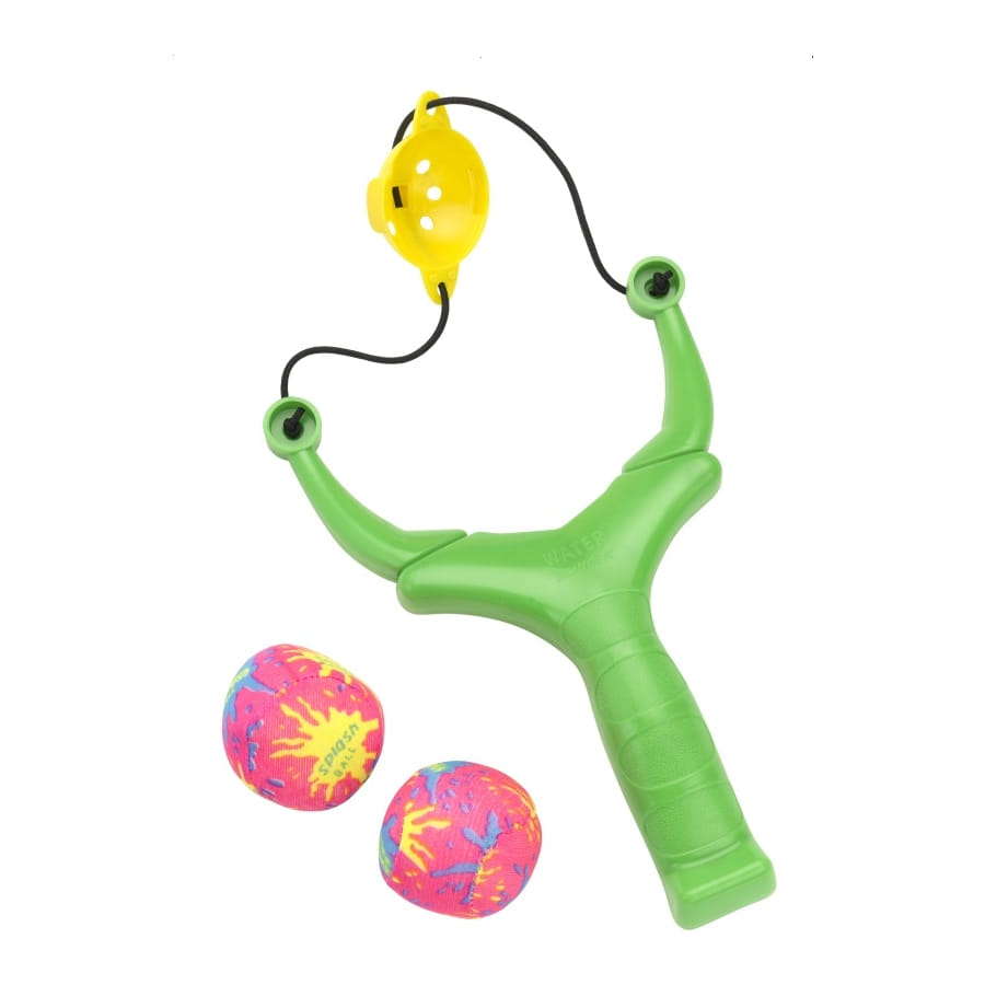 Pour mettre un peu d'ambiance dans un anniversaire pourquoi ne pas offrir cette catapulte aux enfants. Ils vont s'amuser avec. Cette catapulte est verte avec une ficelle noire, les bombes à eau sont rose.