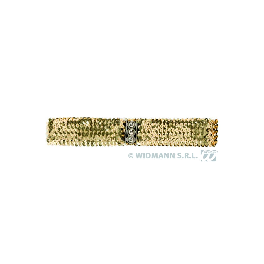 Ceinture dorée pour homme ou femme, recouverte de paillettes de couleur or et ornée d'une boucle or et bronze. C'est un accessoire idéal pour une tenue de danseur ou de danseuse pour un carnaval ou une soirée disco.