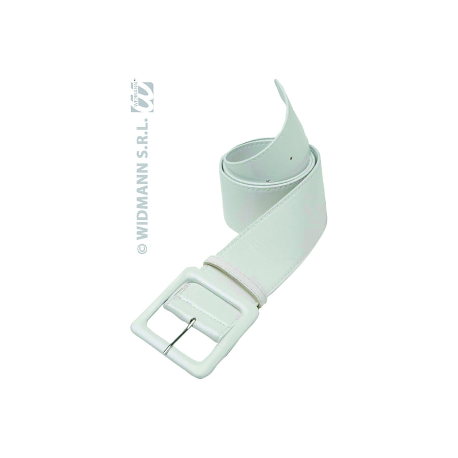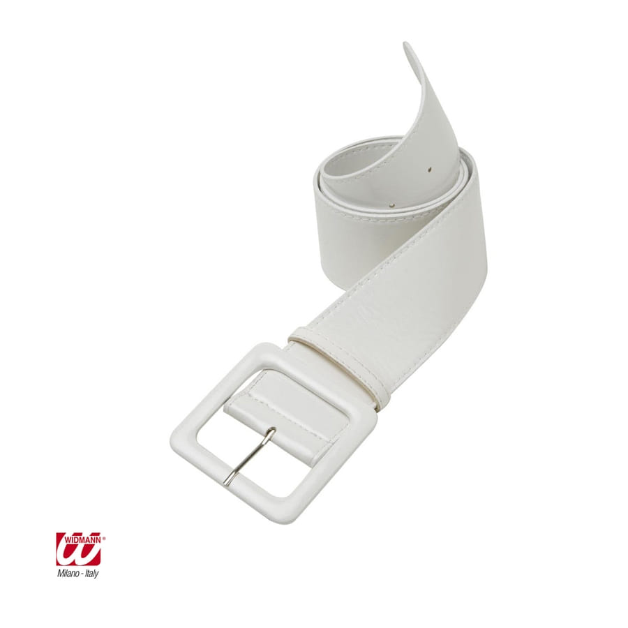 Accessoire de déguisement de danseur ou danseuse pour homme ou femme. Ceinture blanche en vinyle dotée d'une boucle carrée. C'est un accessoire idéal pour une soirée disco remplie de paillettes.