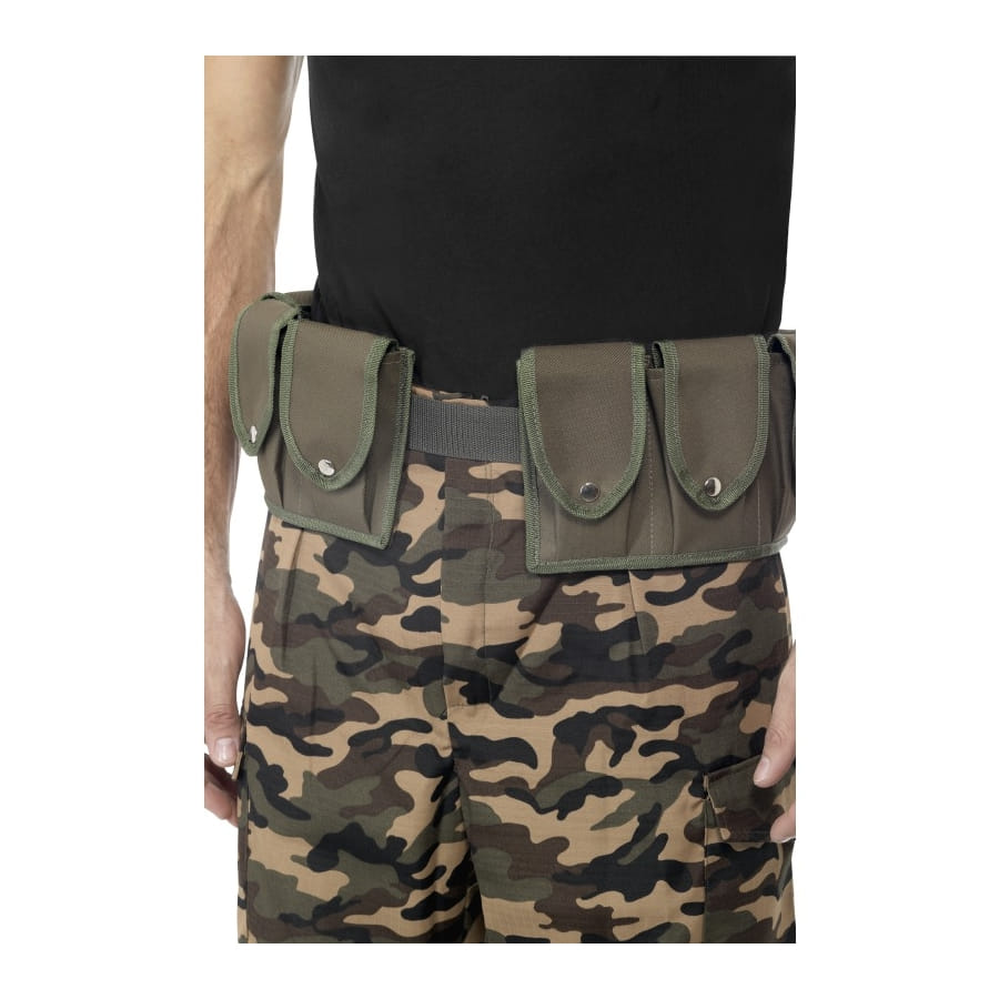 Cette ceinture militaires est l'accessoire parfait pour compléter votre déguisement de militaire. Il est de couleur vert avec des poches dessus. Il est de couleur vert. Elles sont vendues par trois.