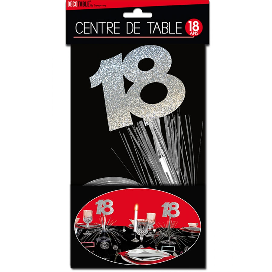 Le chiffre 18 surplombe le centre de table, mais de nombreux autres chiffres, messages ou formes sont disponibles selon vos préférences.