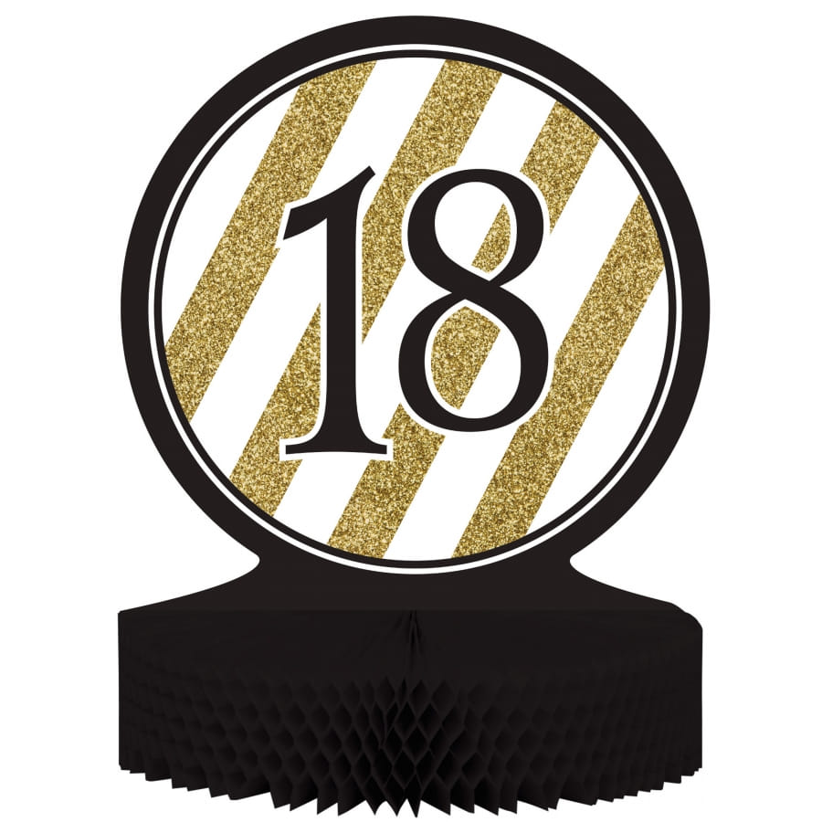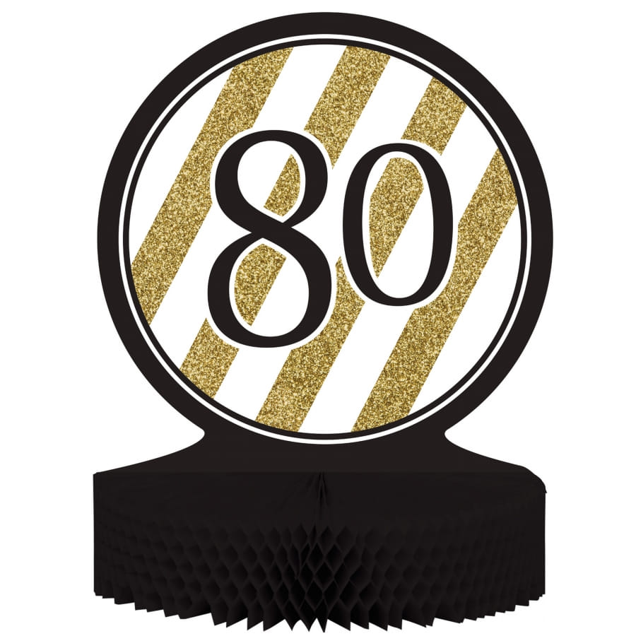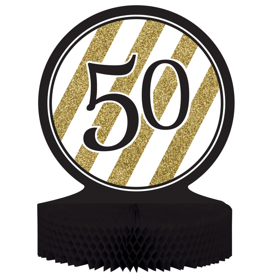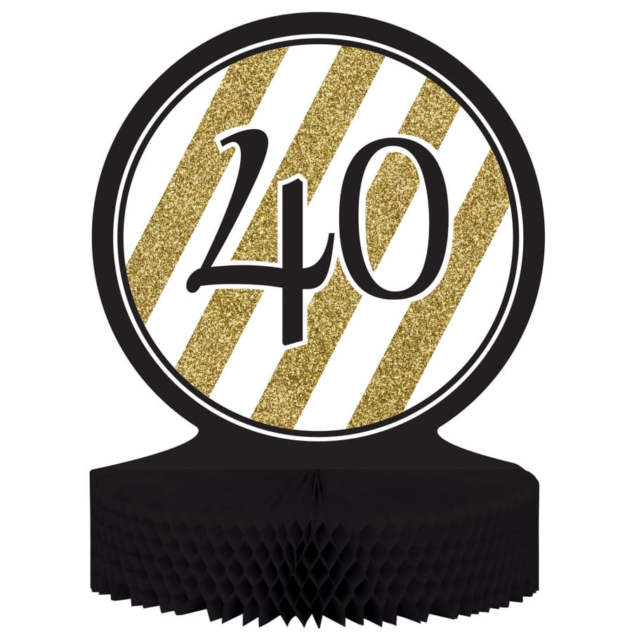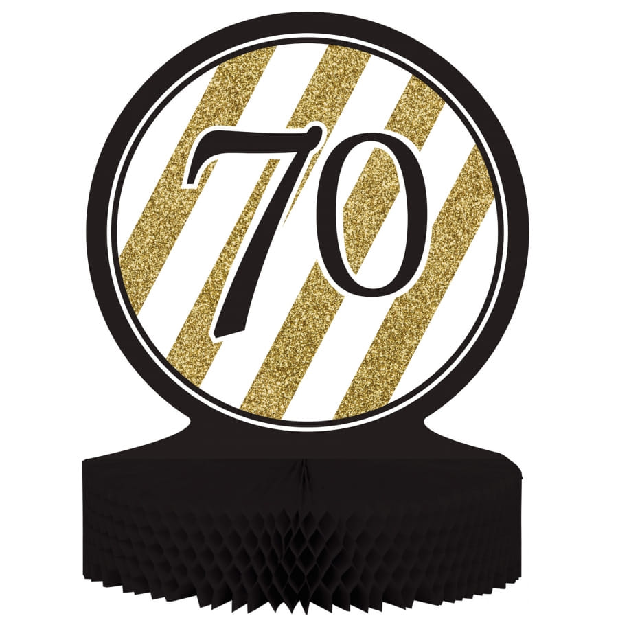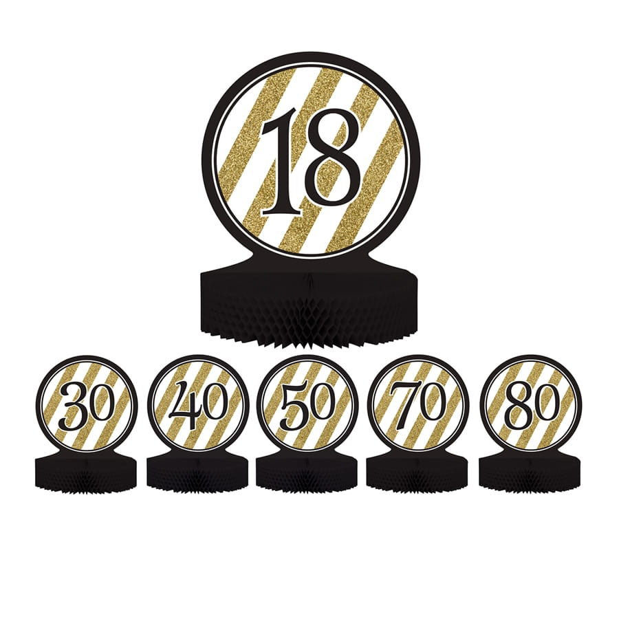 Nous vous proposons ici un Centre de table d'anniversaire noir et or.