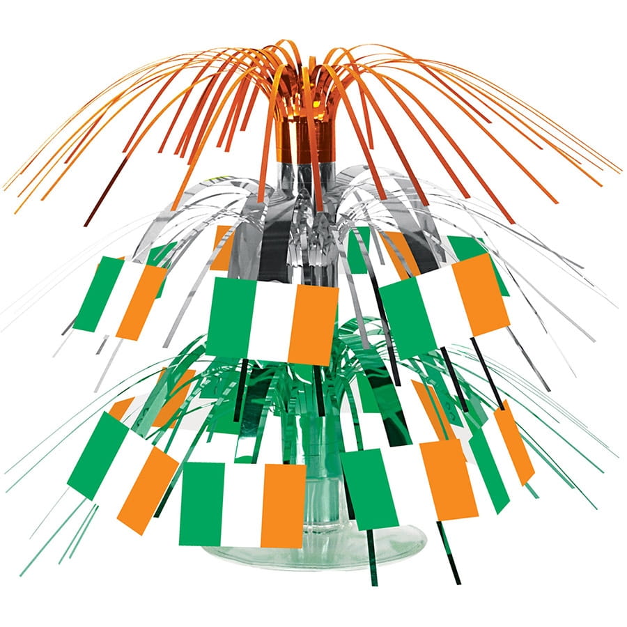 D'une hauteur de 19,1 cm, cet article décoratif est constitué par de multiples drapeaux irlandais entourant une structure en cascade avec des cheveux d'ange orange, argentés et vert métallisés.