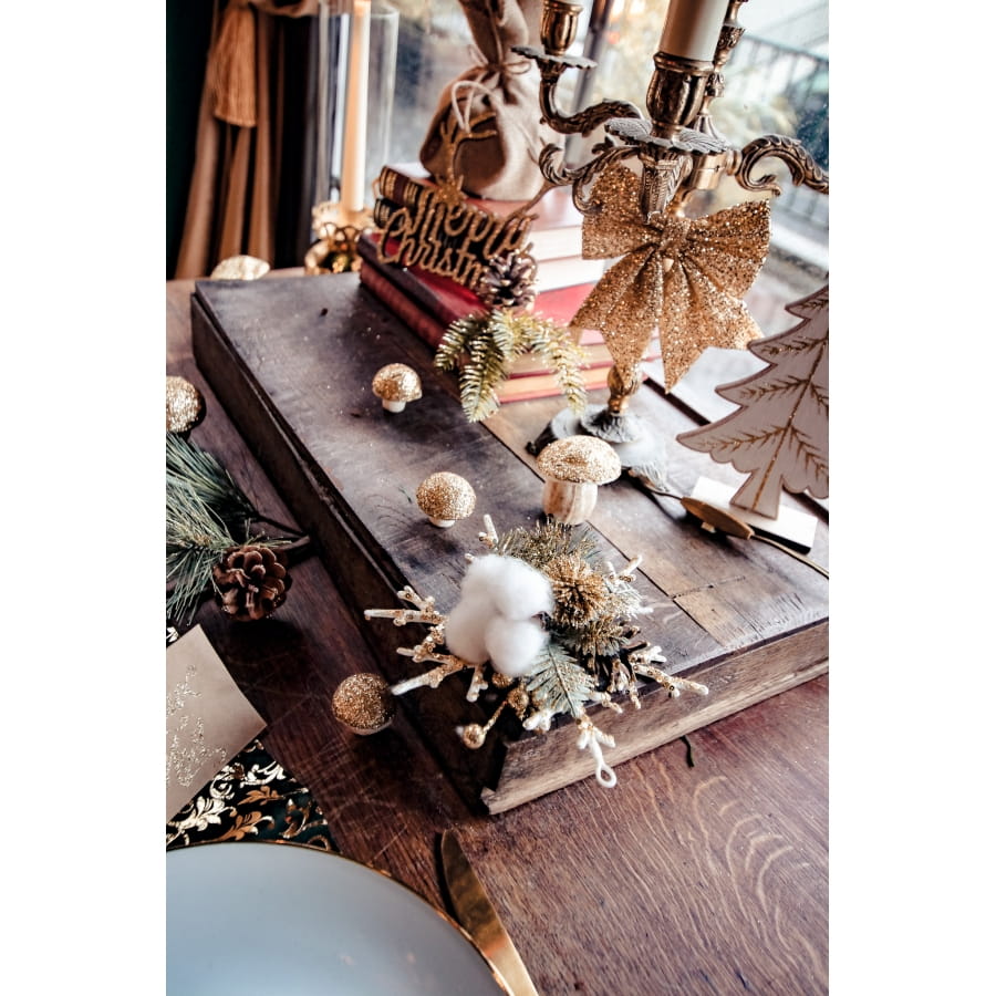 Mettez la nature au coeur de votre décoration de fête de la nativité, avec le centre de table pailleté végétal Noël.