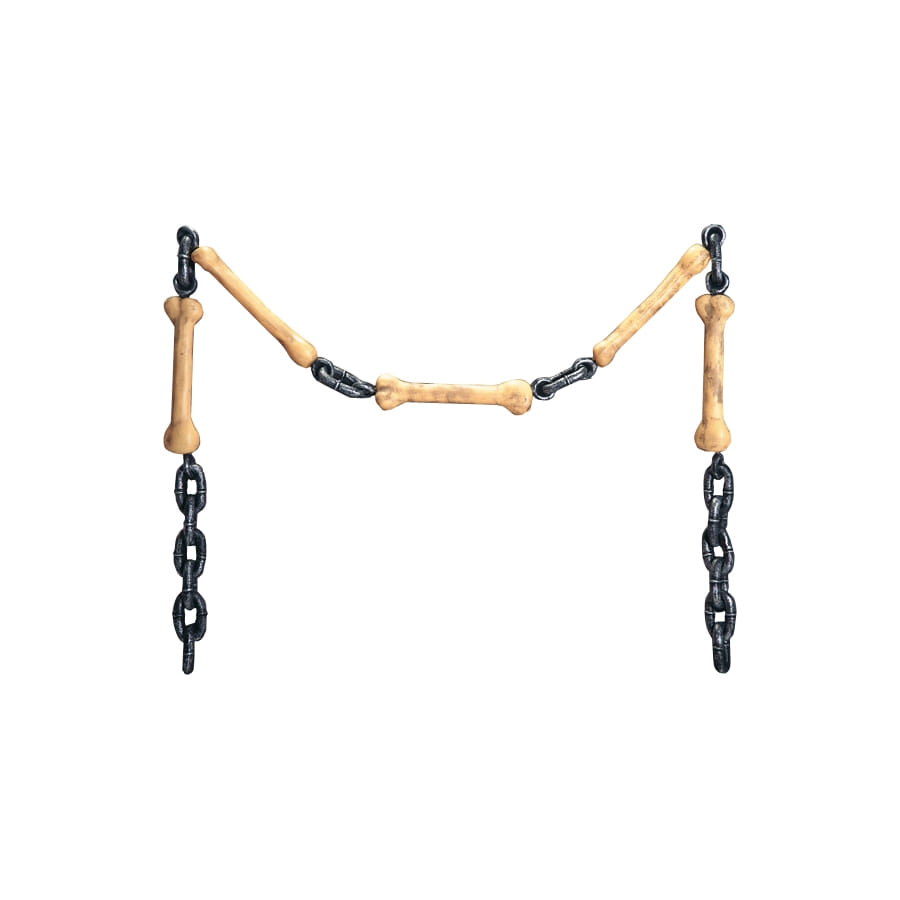 Décoration en forme de chaîne composé d'os de couleur beige et grise. Cet accessoire mesure 2 mètres de long. Vous pourrez l'ajouter à votre déguisement ou l'accrocher à une surface pour Halloween.