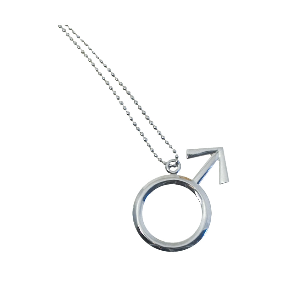 Vous recherchez un accessoire Bling Bling? Ce set composé d'une chaîne à billes alignées et d'un médaillon représentant le symbole masculin est parfait pour vous. Le set entier est de couleur argent. Il est impossible de choisir le modèle ou la couleur lors de la commande. Ce set est idéal pour les carnavals ou les enterrements de vie de garçon ou de jeune fille et siéra à votre tenue hippie.