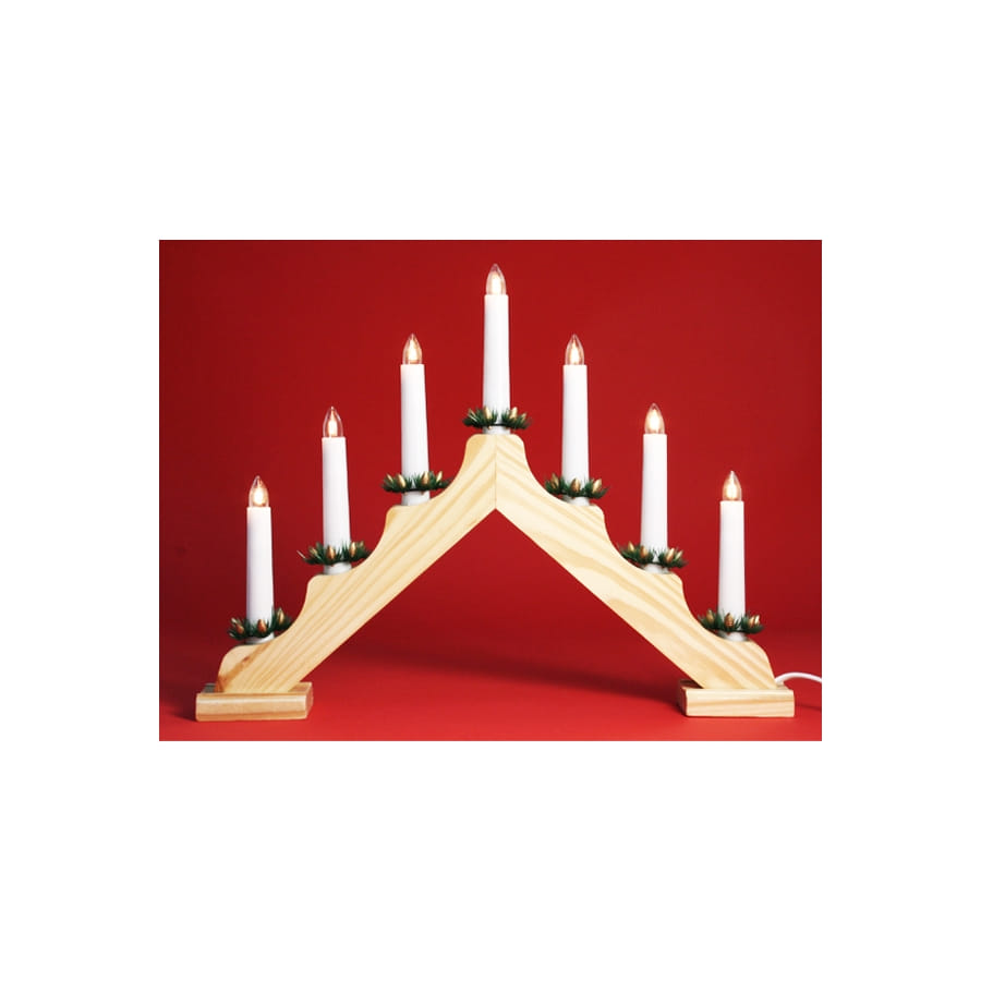 Utilisez ce magnifique chandelier afin d'orner votre maison à l'occasion de Noël ou autre fête aux tons chaleureux. Cet accessoire comporte 7 lampes en forme de bougies fixes de couleur blanche. Il est destiné à un usage intérieur et les lampes, que vous pourrez brancher au secteur, sont fournies au moment de la livraison.