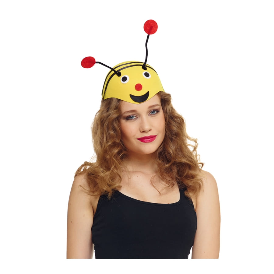 Pour une fête sur le thème des animaux, choisissez la simplicité en adoptant ce chapeau abeille pour adulte. Il s'agit d'un simple couvre-chef arrondi, un genre de casque, ayant la forme d'une abeille avec un corps jaune, des rayures noires, de gros yeux, un petit nez rouge et un gros sourire. Le tout est surmonté de deux antennes noires à bout rouge. Ce chapeau très pratique conviendra autant aux hommes qu'aux femmes.