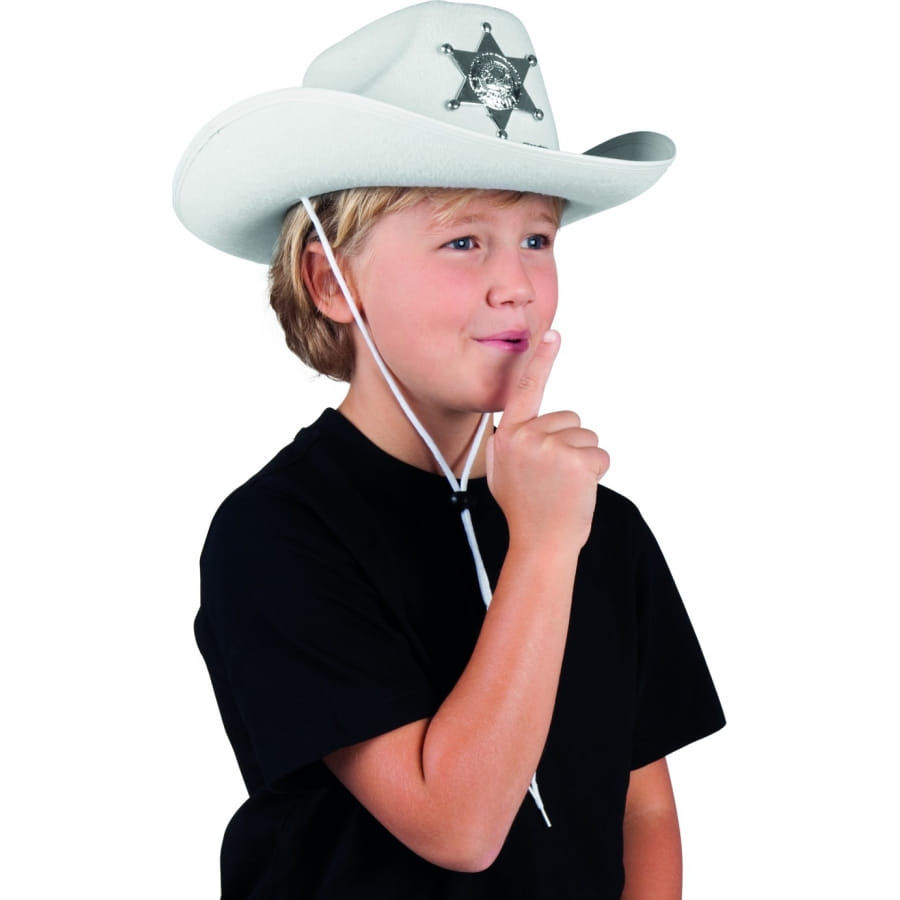 Ce chapeau blanc de shérif pour enfant est approprié aux petits garçons comme aux petites filles.