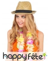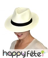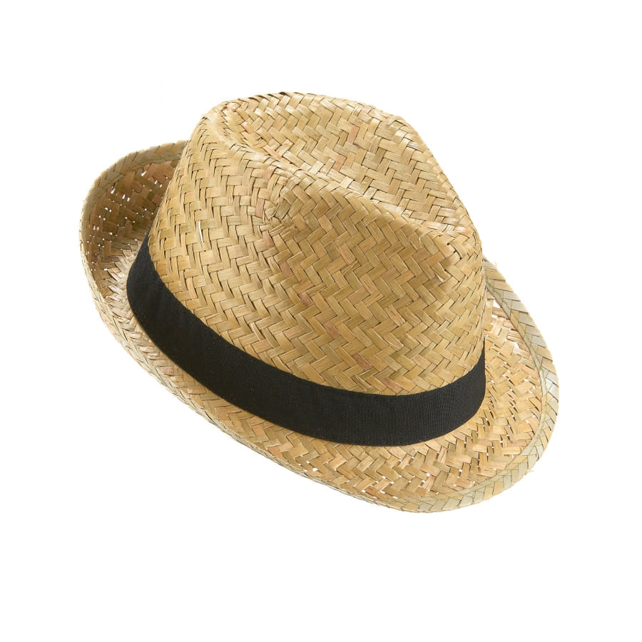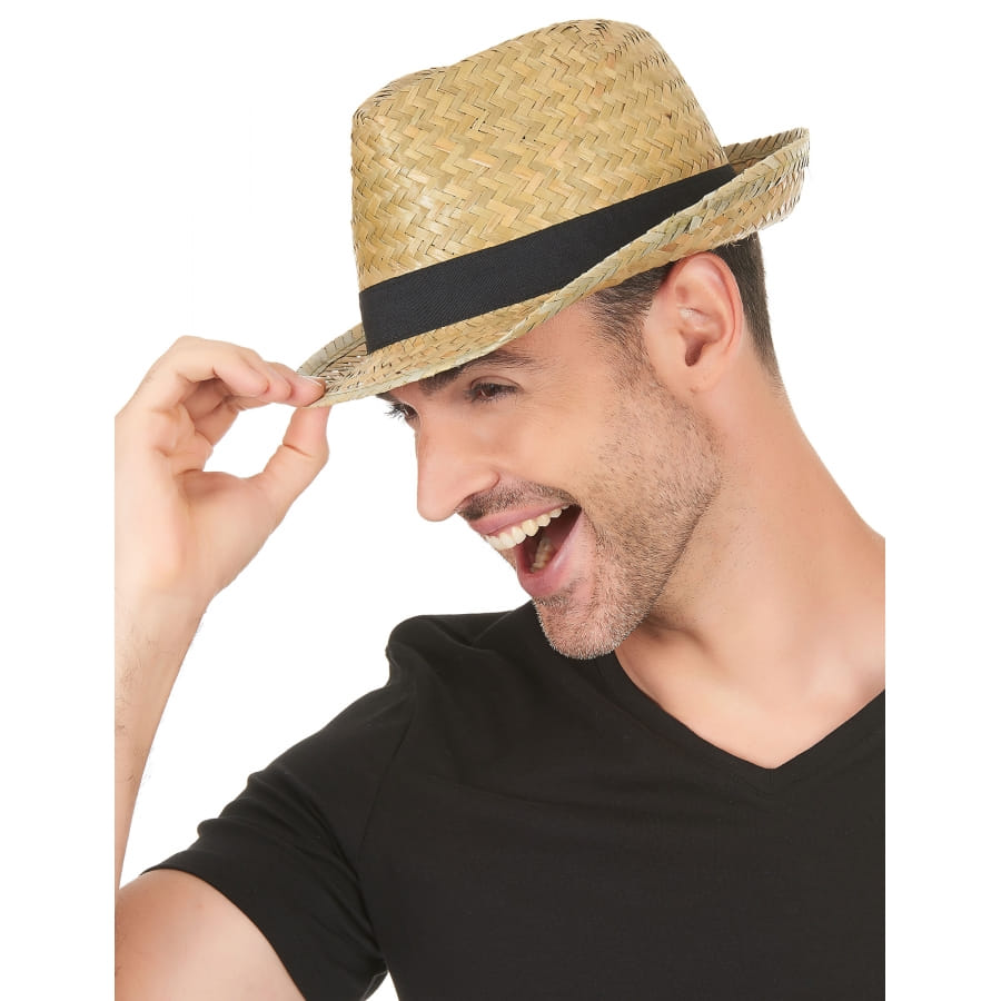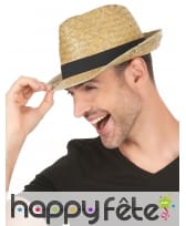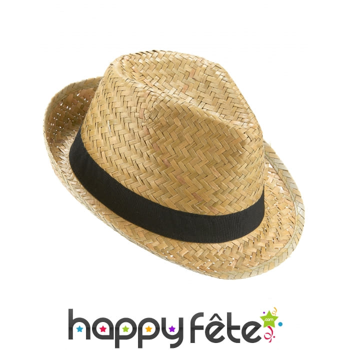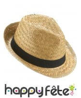 Le chapeau borsalino en paille semi-rigide avec ruban en tissu noir est destiné aux adultes.