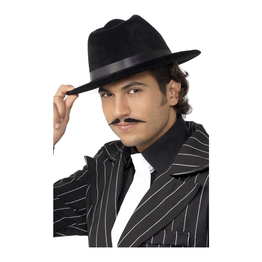 Chapeau borsalino de couleur noire, pour homme ou adolescent. Le chapeau est élégamment orné d'un ruban assorti. Il vous donnera un air de gangster, idéal pour une soirée Charleston ou spéciale mafia.