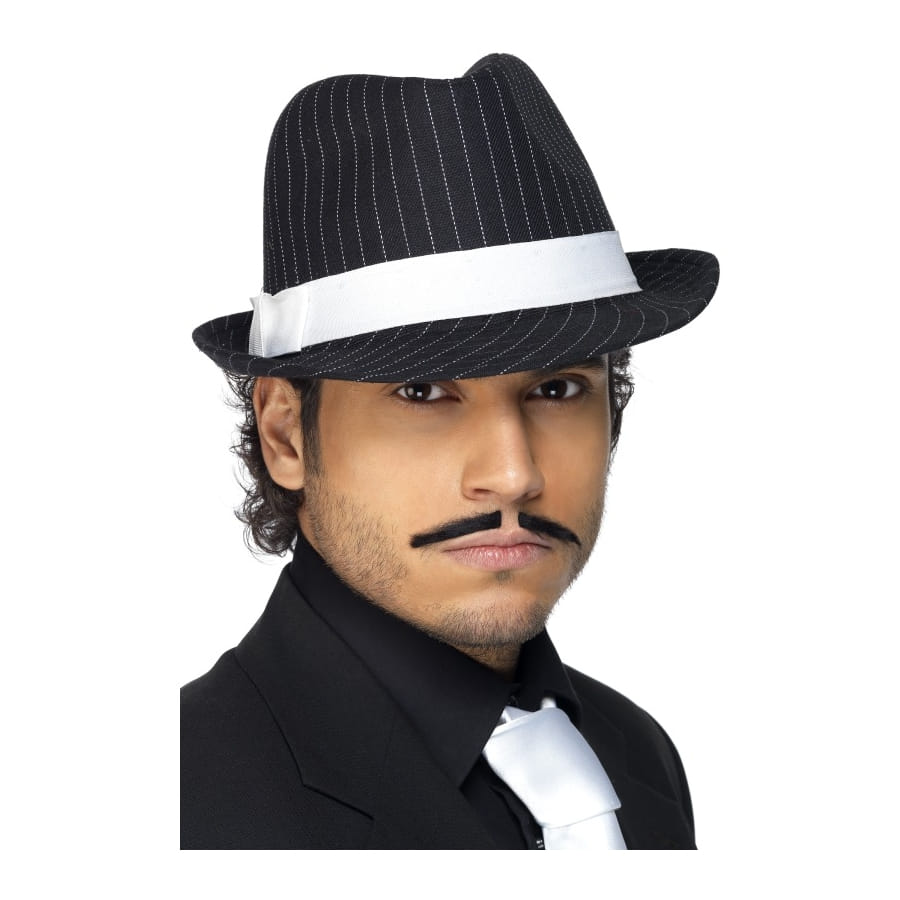 Chapeau borsalino, pour homme ou adolescent, de couleur noire, avec fines rayures et ruban de couleur blanche. Ce chapeau fera de vous un gangster élégant mais intimidant à la fois pour une fête basée sur le thème des années 20-30.