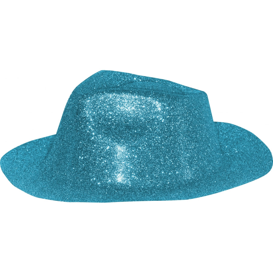 Gangster et danseur, savant mélange avec ce chapeau Capone recouvert de paillettes turquoises. Cet accessoire complète parfaitement un déguisement de gangster un peu excentrique.