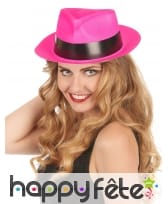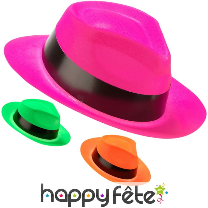 Le chapeau carpone de ganster pour adulte, fluo est en plastique très fin et malléable.