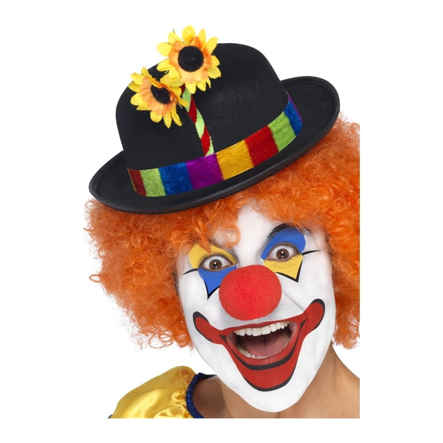 Chapeau de clown de couleur noire, avec ruban multicolore et fleurs de tournesol, pour homme, femme, adolescent ou adolescente. Cet accessoire est parfait pour un anniversaire d'enfants, où vous serez l'animateur principal!