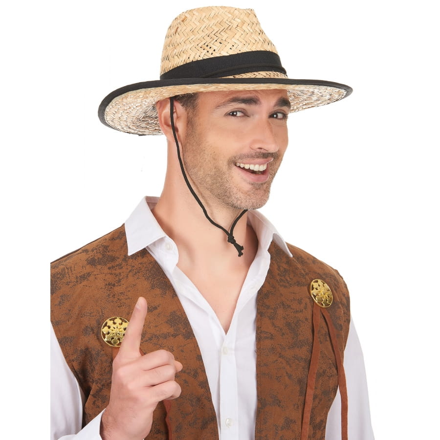 Ce chapeau Cowboy avec contour et ruban noir pour adulte accompagnera merveilleusement bien un déguisement de cowboy.