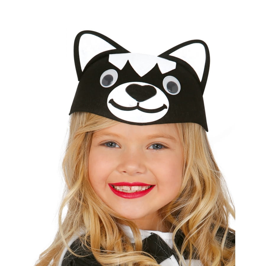 Ce Chapeau d'un petit chat noir et blanc enfant sera idéal pour compléter un costume original lors d'une fête sur le thème animalier.