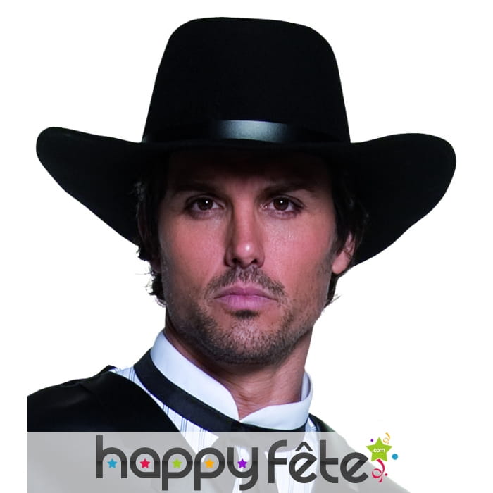 Chapeau de bandit Western de couleur noire avec ruban assorti. Cet accessoire vous transformera en vrai terreur de Western à l'occasion d'un carnaval.